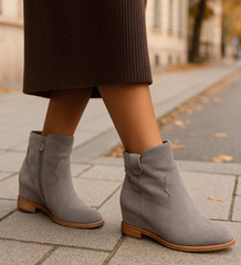 Niskie beżowe kozaki damskie na platformie z elastyczną cholewką /E1-1 16819 G388 +H2/