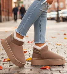 Krótkie kozaki śniegowce beżowe ocieplane /D8-1 18421 T266/