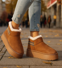 Krótkie kozaki śniegowce karmelowe ocieplane /D3-1 18420 T266/
