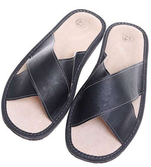 Skórzane domowe klapki kapcie Czarne /G4-1 14975 S194/