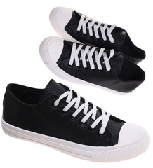 Czarno białe niskie trampki męskie /D1-2 17985 T232/