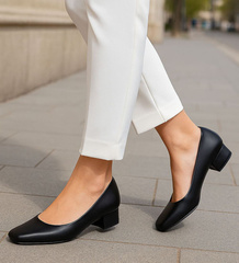 Lakierowane czarne czółenka na słupku /F9-2 12665 T496/