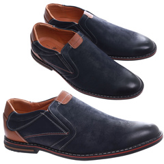 Granatowe sandały na niskim koturnie /A6-2 17923 W333/