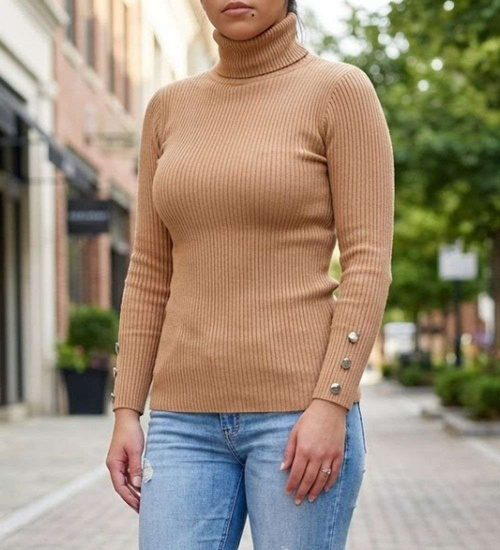 Damski beżowy golf z guziczkami /D8-1 UB287 U108/