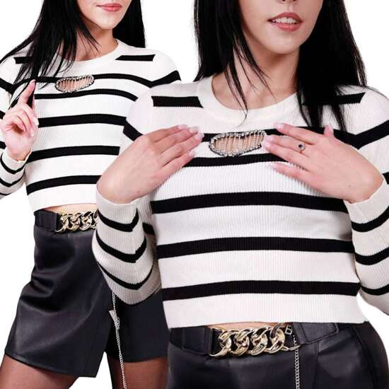 Biało czarny dopasowany sweter w paski /H UB595 T436/