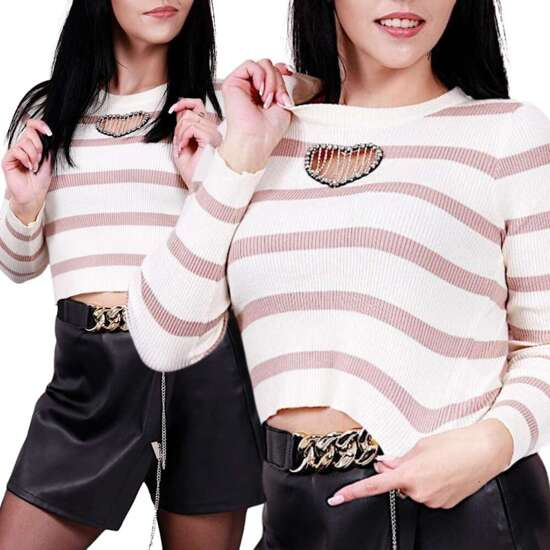 Ecru damski sweter nietoperz w paski /H UB583 T582/