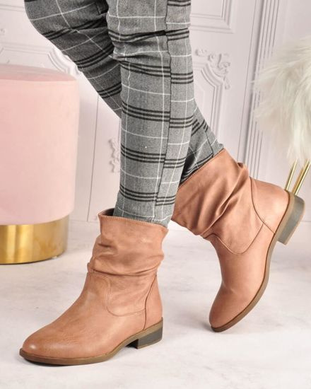Beżowe botki sztyblety z łańcuchem /A3-3 12254 S798/