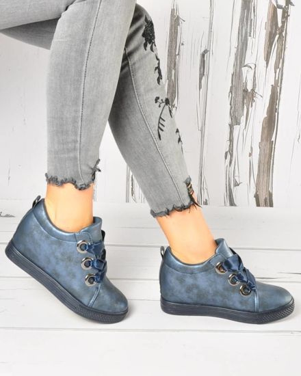 Materiałowe trampki na platformie sznurowane /J5-1 18492 W6/