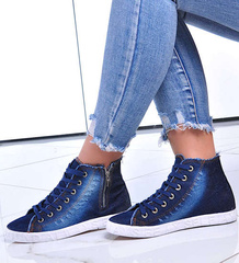 Sznurowane trampki damskie Granatowe /B1-2 12352 S294/