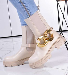 Beżowe botki sztyblety z łańcuchem /A3-3 12254 S798/