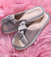 (ilość produktów: 1820)Skórzane domowe klapki z kokardą Szare /G9-1 10858 S194/