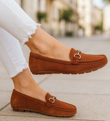 Zamszowe karmelowe baleriny lordsy z ozdobą /H2 18474 W9-84/