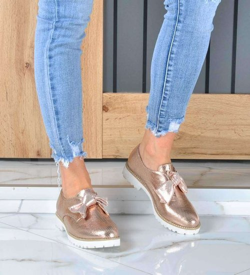 Beżowe balerinki lordsy z łańcuszkiem /A4-3 14647 T236/