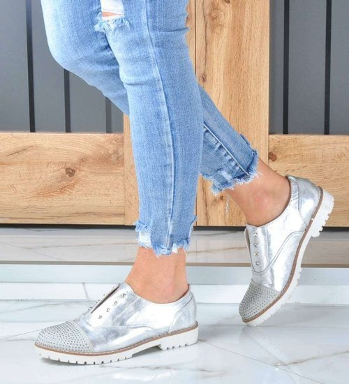 Srebrne baleriny damskie lakierowane /F4-2 13473 T194/