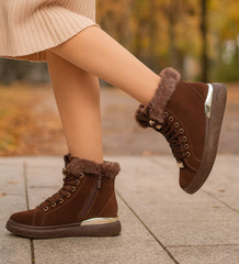 Czekoladowe zimowe trampki z kożuszkiem /G11-3 18496 T7/