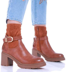 Brązowe botki damskie na słupku z ociepleniem /D5-1 17045 G324/