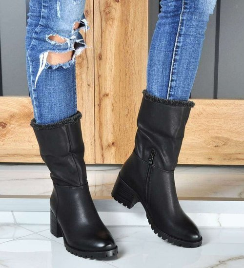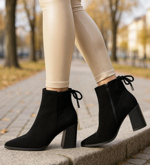 Klasyczne botki damskie zimowe na obcasie Czarne /K3-1 18564 W222/