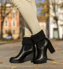 Czarne zimowe botki na słupku /E1-1 18562 G284/