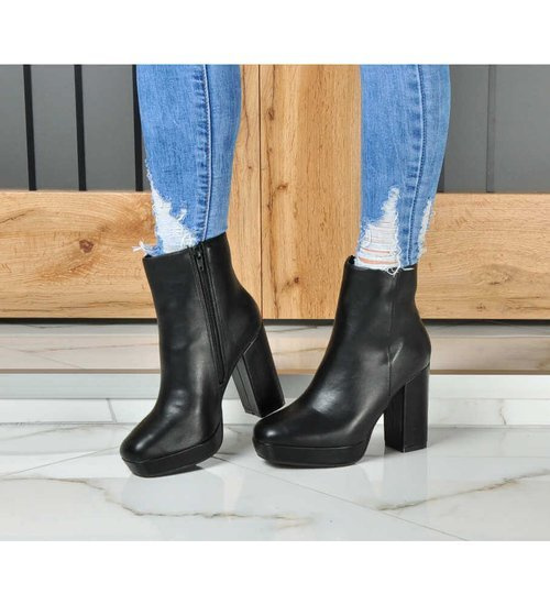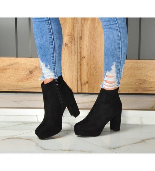 Czarne botki na obcasie z suwakiem /C7-3 18414 T300/