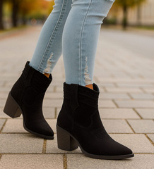 Damskie czarne botki na niskim obcasie /E10-3 12579 T145/