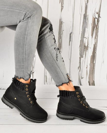 Czarne ocieplane botki workery sznurowane /A10-118576 W386/