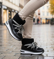 Zimowe botki sportowe damskie czarne /G5-1 18550 W18-47/