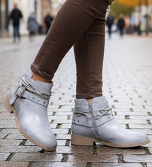 Srebrne damskie botki z wyciętą cholewką /D3-3 18515 T198/