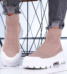 Wiosenne botki z tkaniny na platformie Khaki /E10-3 15705 T144/