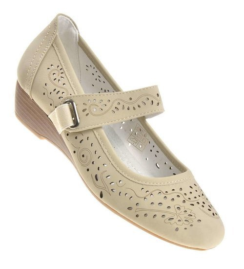 Uroczą kreację w stylu lat. 50. i 60. XX wieku stworzą ażurowe, jasne buty czółenka w połączeniu z rozkloszowaną sukienką i opaską we włosach. Wygodę noszenia zapewnią ich zaokrąglone noski i pasek utrzymujący buty stabilnie na nodze.