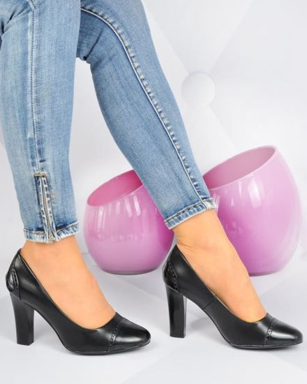 Czarne klasyczne czółenka damskie na słupku /E5-2 15240 T595/