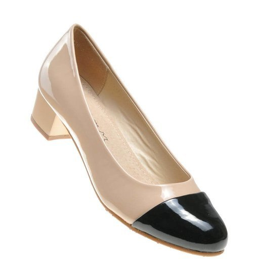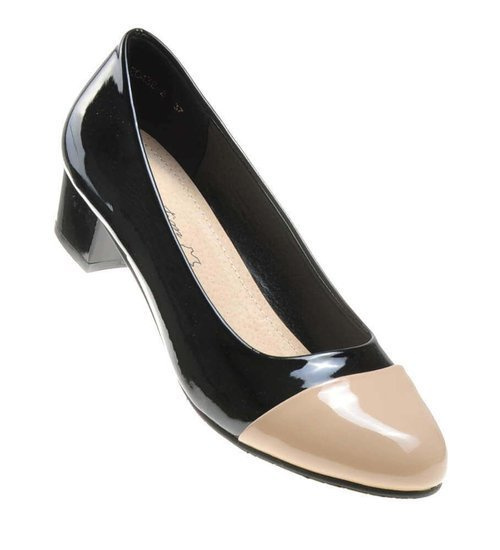 Dla pań ceniących sobie klasyczne stylizacje przyciągające uwagę starannie dobranymi dodatkami, dobrym wyborem będą czółenka na niewysokim obcasie z lakierowanej skóry ekologicznej utrzymane w dwóch kolorach. Uniwersalne połączenie beżu i czerni na noskach butów powoduje, że można założyć je do ubrań w bardzo różnych odcieniach.