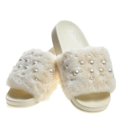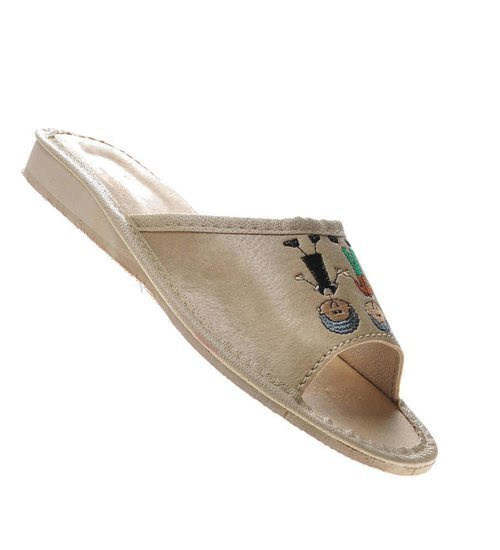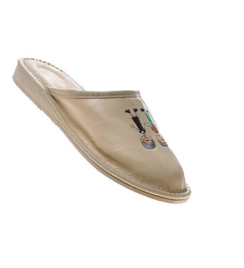 Skórzane beżowe kapcie damskie z wełną /D3-1 18465 S196/
