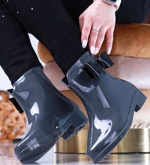 Czarne krótkie kalosze gumowce sztyblety błyszczące /E2-1 16974 T391/