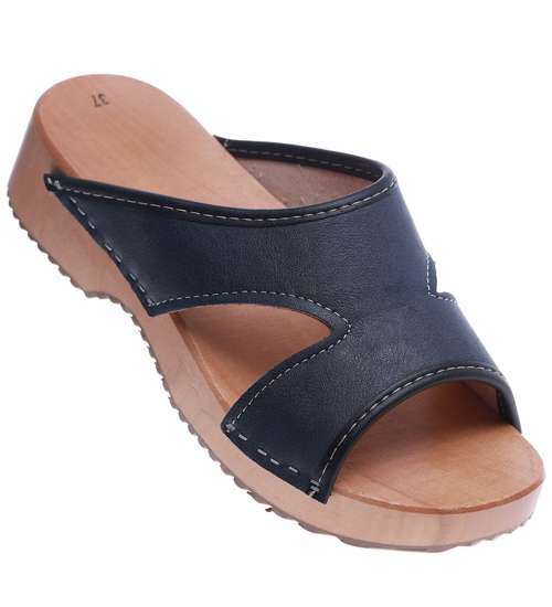 Czarne kryte ażurowe klapki damskie /F6-1 17908 T189