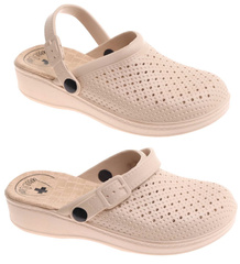 Beżowe kryte ażurowe klapki damskie /F3-1 17907 T189
