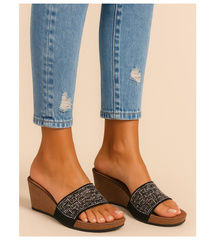 Czarne klapki damskie na koturnie /A6-2 13823 T195/