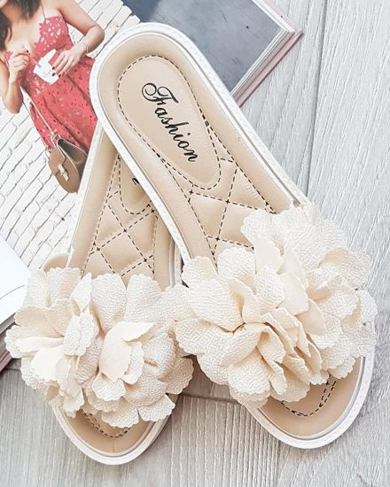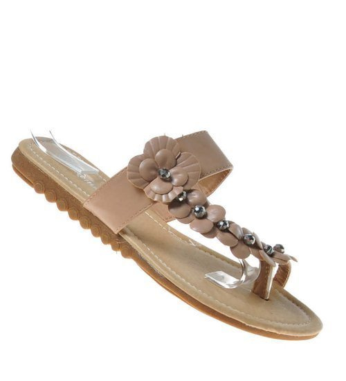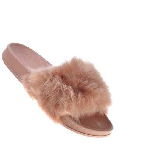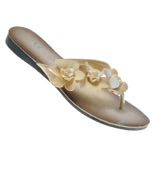 Klapki damskie na płaskim obcasie Jasny Beż /C3-2 17838 G285/