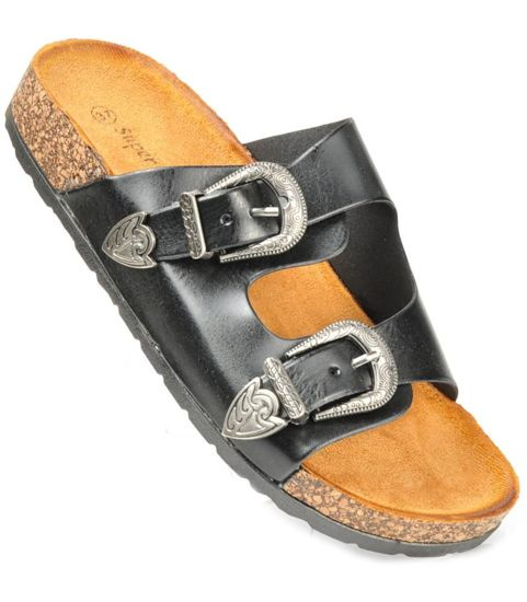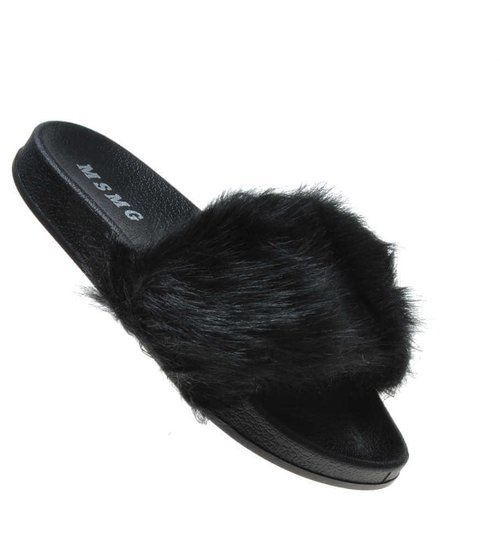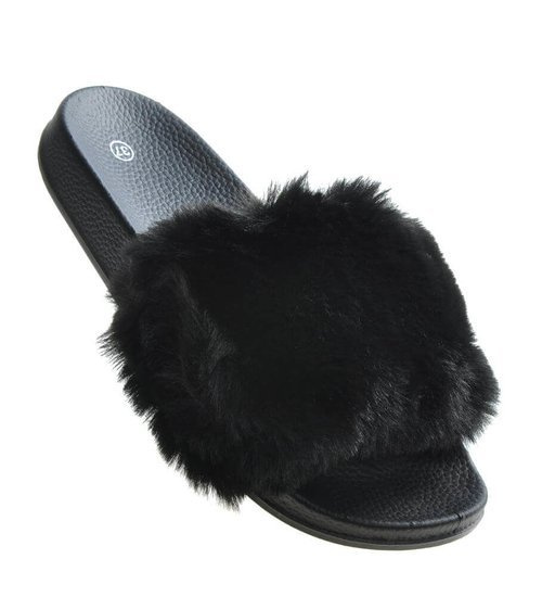Czarne płaskie klapki damskie /B2-2 16173 T182/