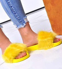 Energetyzujący kolor żółty lub optymistycznie nastrajający róż – dlaczego ograniczać się do najbardziej popularnych kolorów? Klapki z futerkiem w odblaskowych, zaskakujących odcieniach mogą nie tylko poprawić nam humor w domu, ale stanowić także fantazyjny dodatek do miejskiej stylizacji dla kobiet, które lubią bawić się modą.