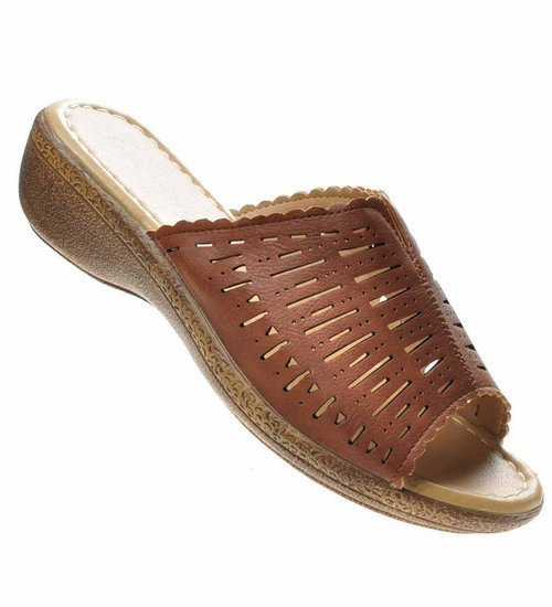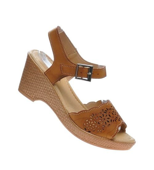Karmelowe klapki na espadryle na platformie /E4-3 17934 G182/