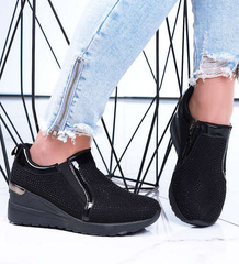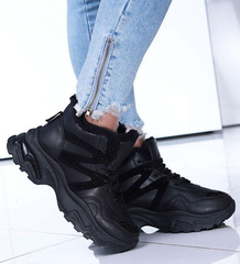 Czarne sneakersy damskie na koturnie /E8-3 12765 T891/