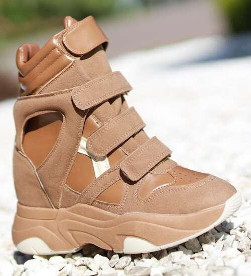 Beżowe sneakersy damskie na koturnie /E6-2 12769 T796/