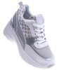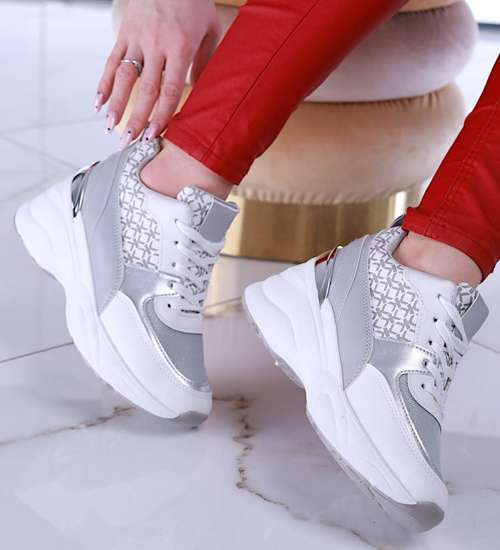Biało szare sneakersy damskie na niskim koturnie /A10-3 15594 T489/