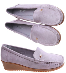 Beżowe zamszowe czółenka na koturnie /D5-3 17260 W137/
