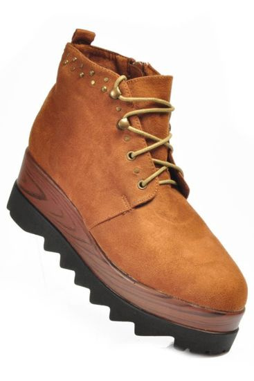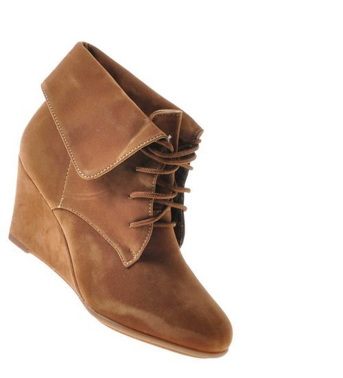 Karmelowe botki damskie na koturnie /D2-1 18352 W385/