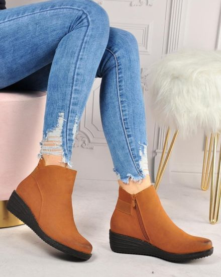 Karmelowe botki damskie na niskim koturnie /i5-3 H2 18425 T288/