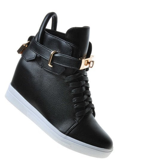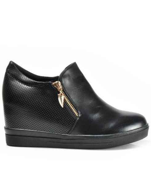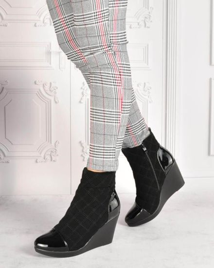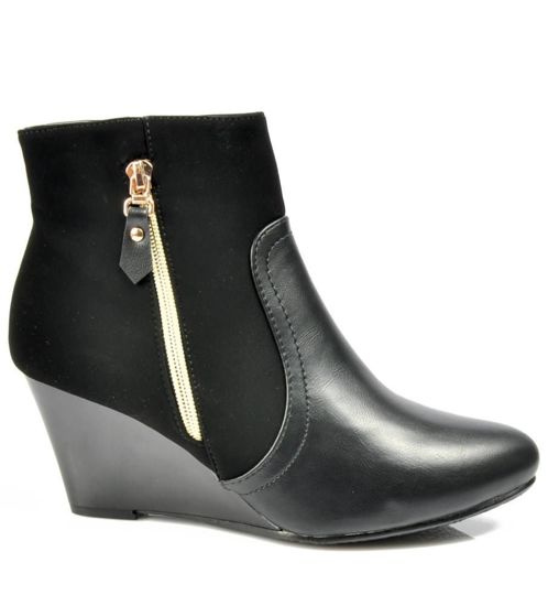 Zamszowe botki damskie na koturnie Czarne /A2-2 18325 W480/