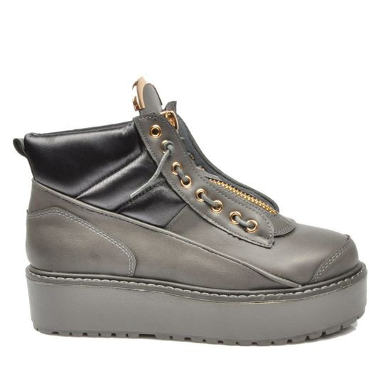 Zamszowe botki damskie na niskim koturnie Szare /D6-3 12260 T296/