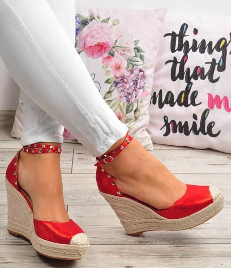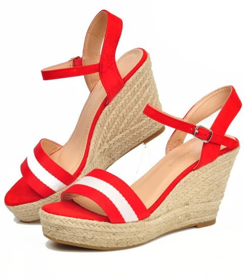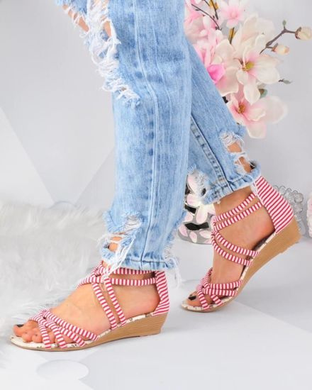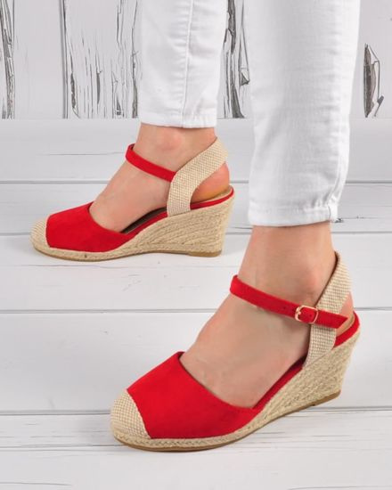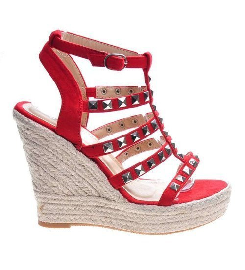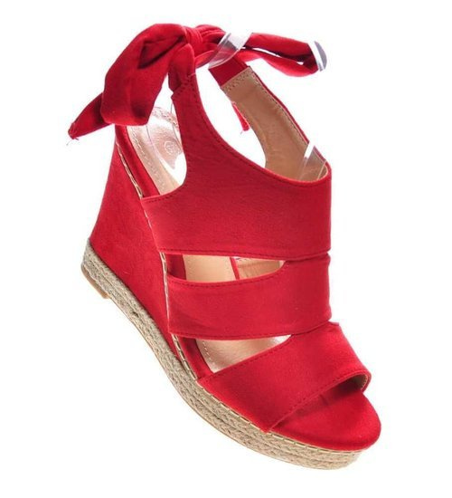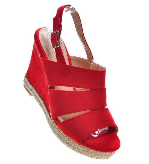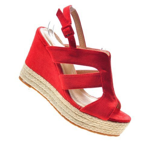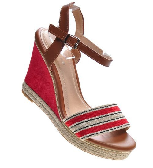 Czerwone sandały na niskim koturnie /C7-3 17924 W235/