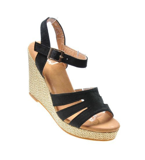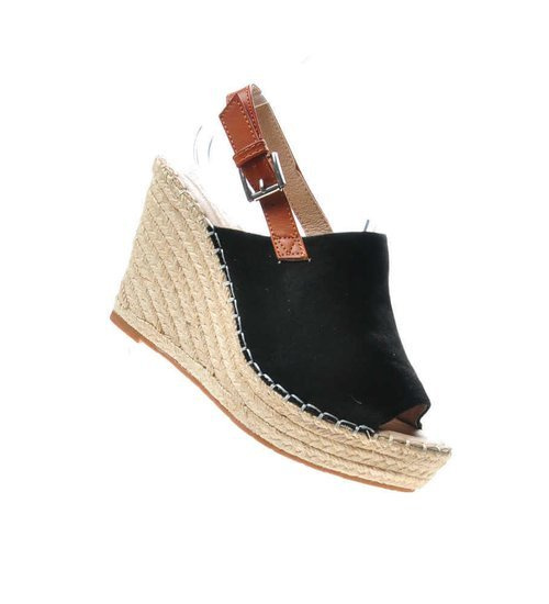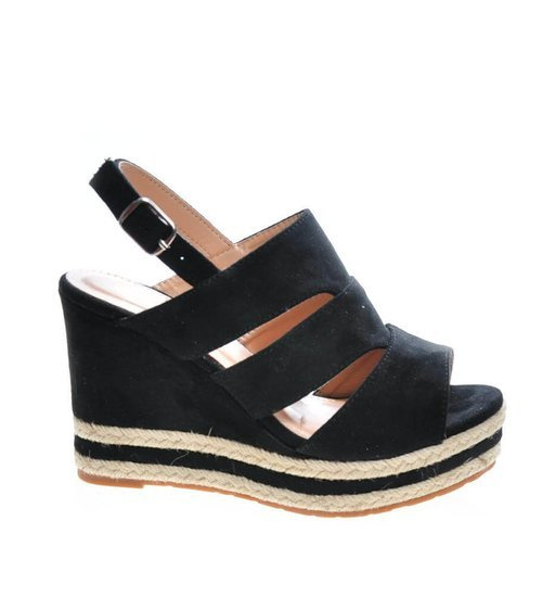 Czarne damskie sandały espadryle na koturnie /G5-3 16270 T192/